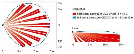 | Настройка области детекции | ограничение дальности СВЧ зоны 9 / 12 / 15 |