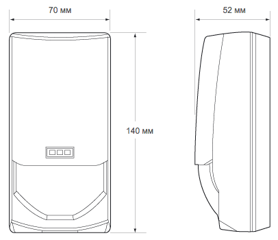 | Угол зоны (Охранные датчики) | 90° объемная |