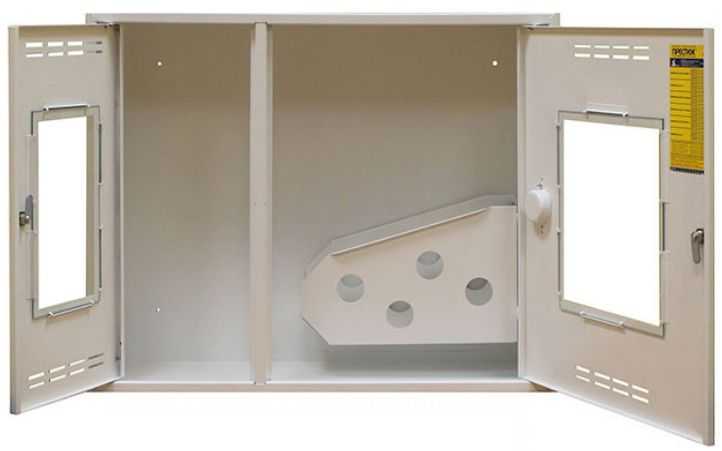 Шкаф 02-Н с кассетой для рукава. Информационная эткетка "Пожарный кран". Информационная этикетка " Огнетушитель"