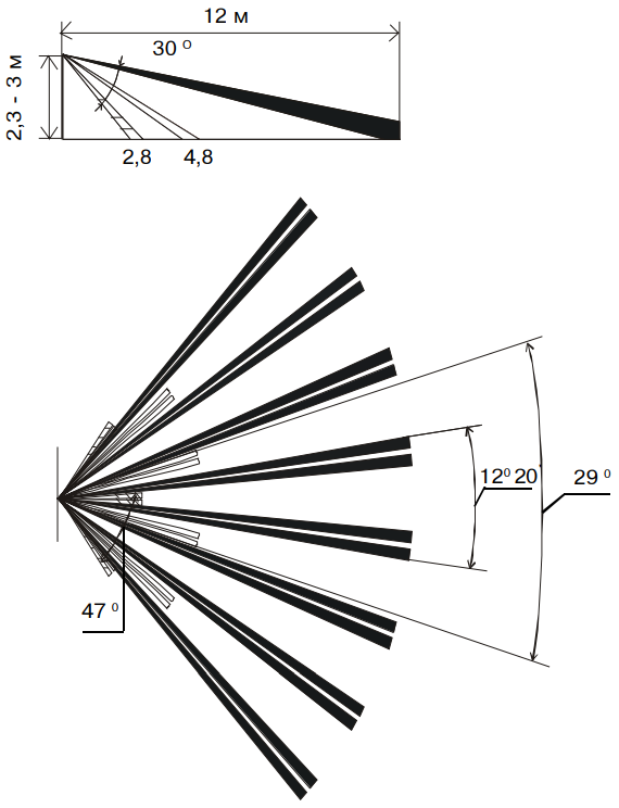 - 45* в вертикальной плоскости и 5* в горизонтальной плоскости на максимальной дальности для извещателя ИО209-8 "Фотон-6А";